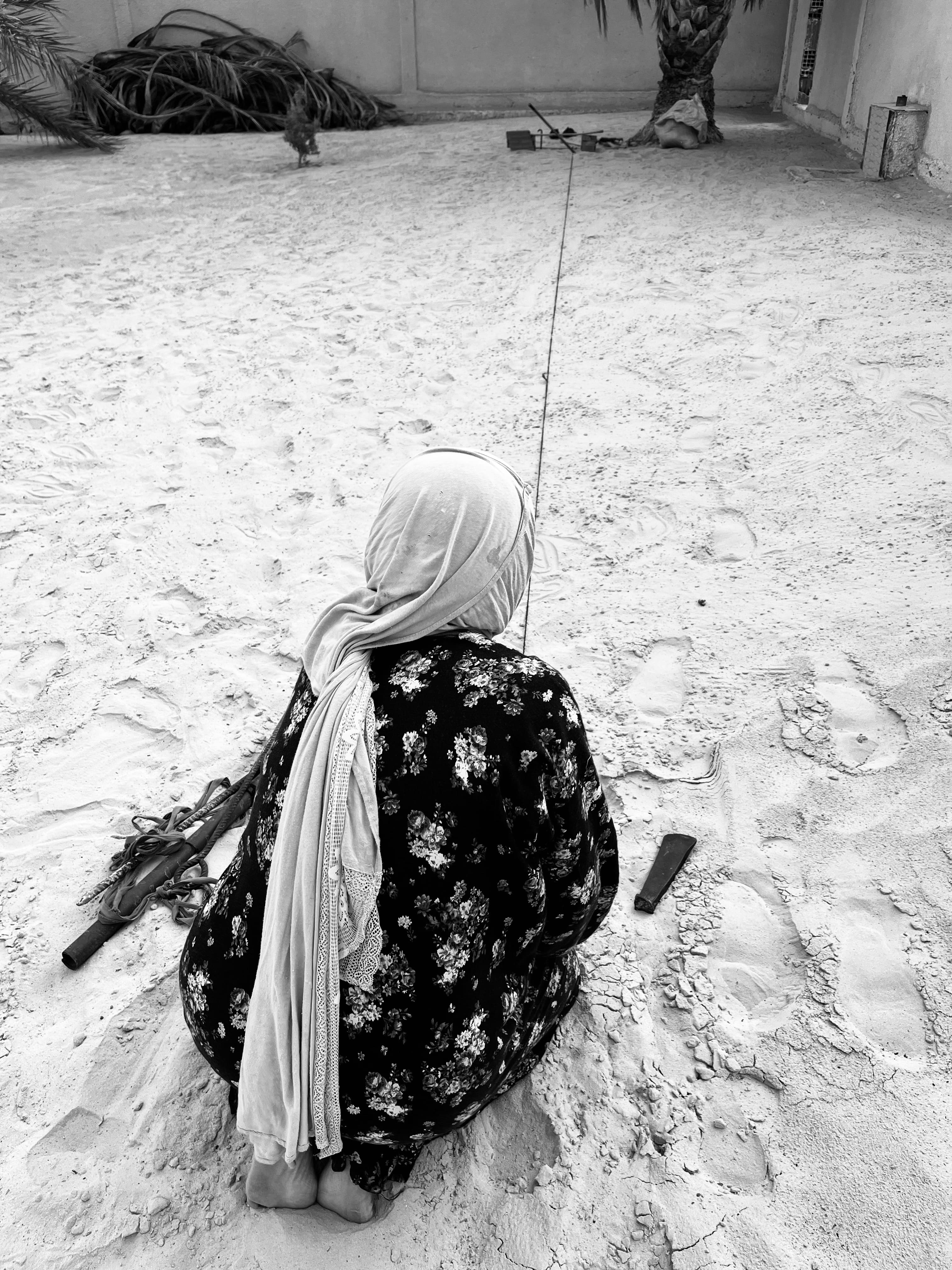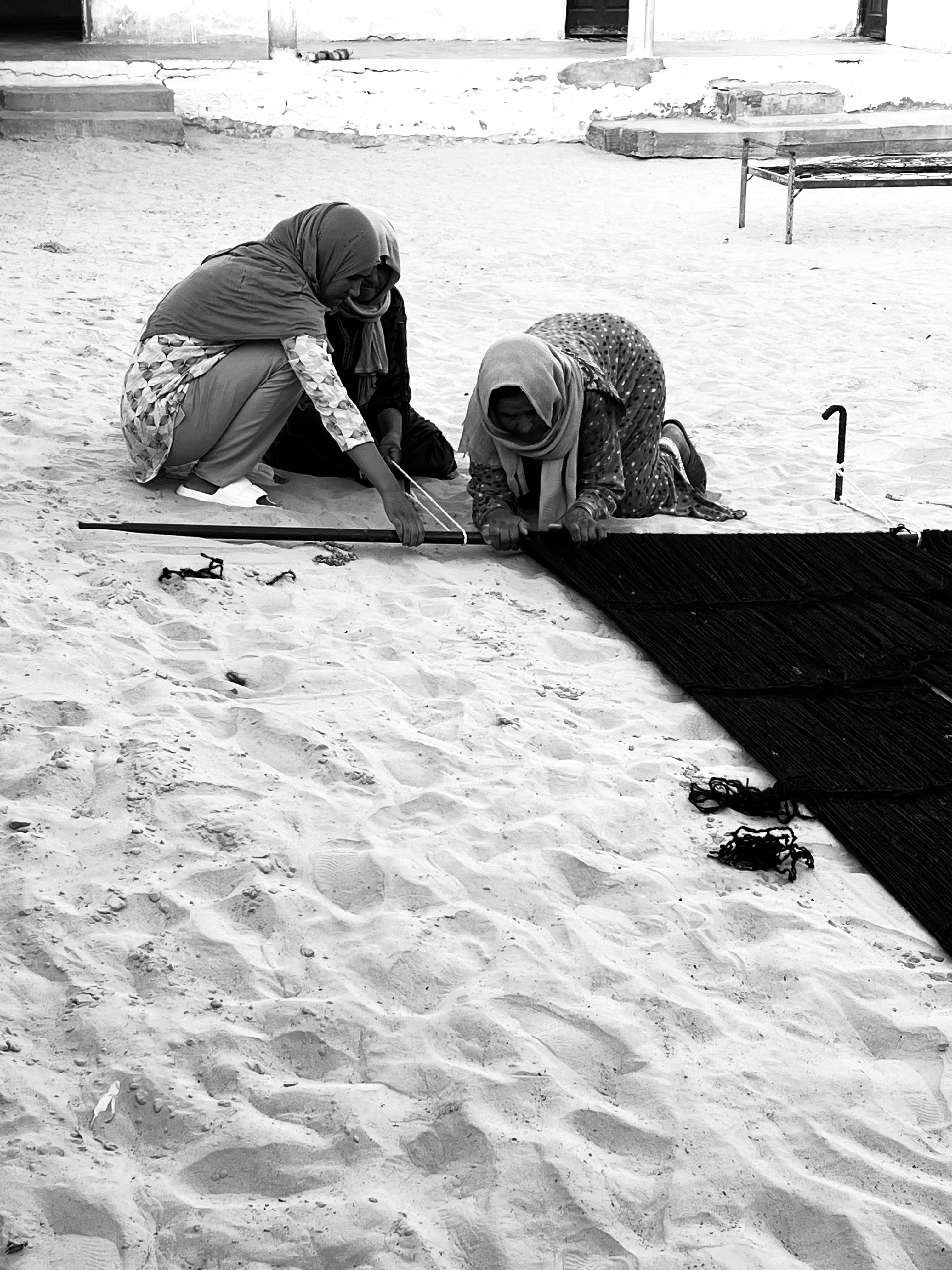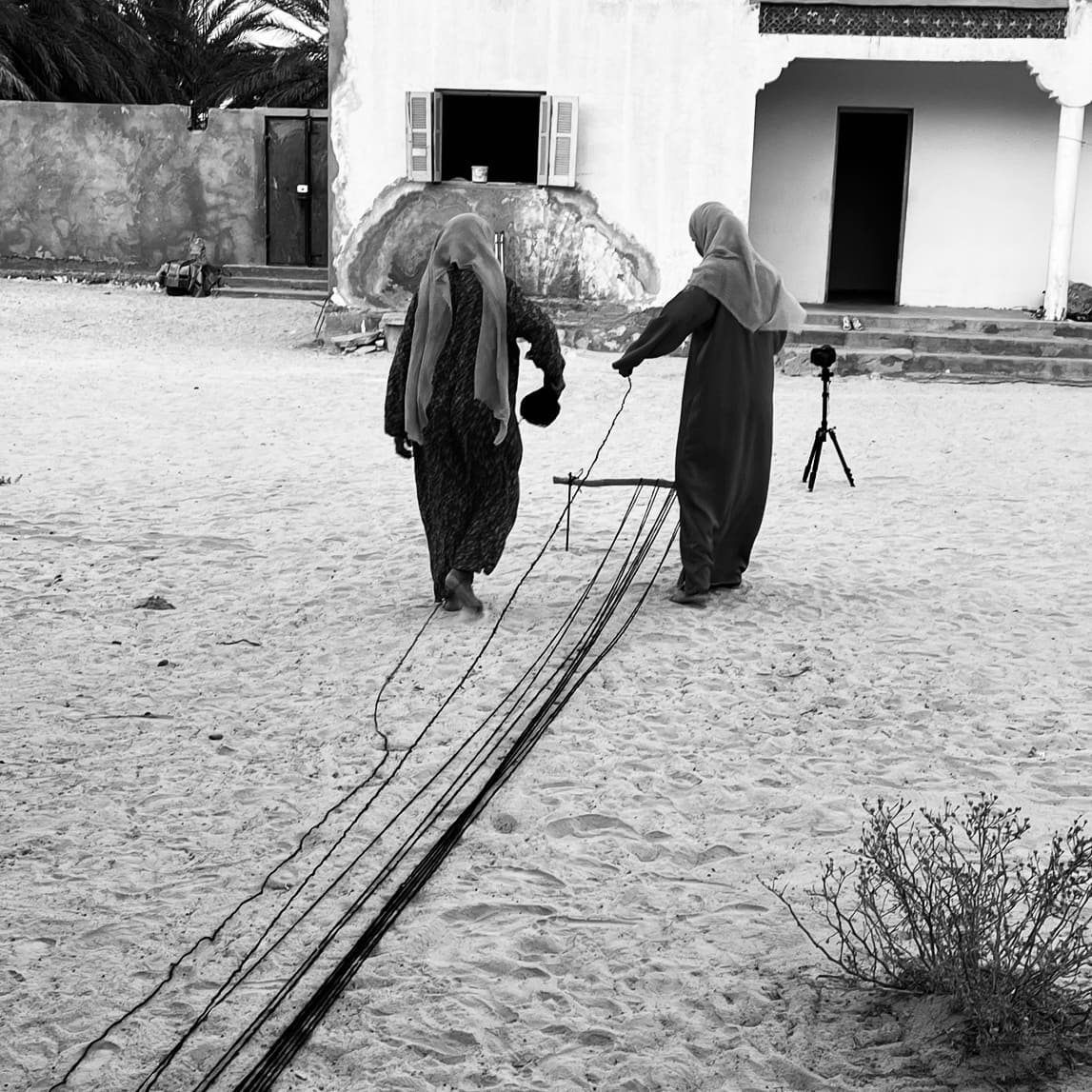 Centuries ago, the Mrazig people migrated from the Middle East, crossing Egypt and Libya before spreading across North Africa. By the end of the 12th century, they settled in southern Tunisia, in Douz. Deeply connected to both the memory of their origins and the land that carries them, they continue this ancient weaving tradition. Even after settling, as if holding their breath, they remain ready to leave again. Each trembling thread carries within it the promise of a new journey.